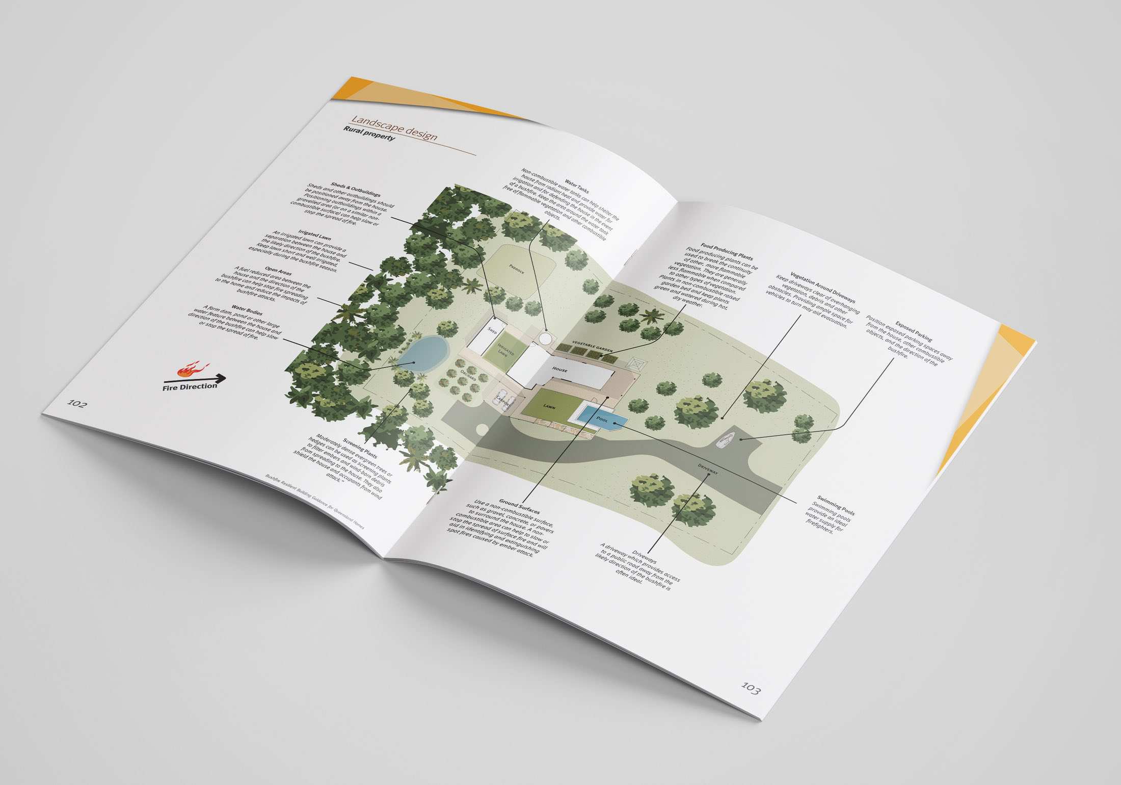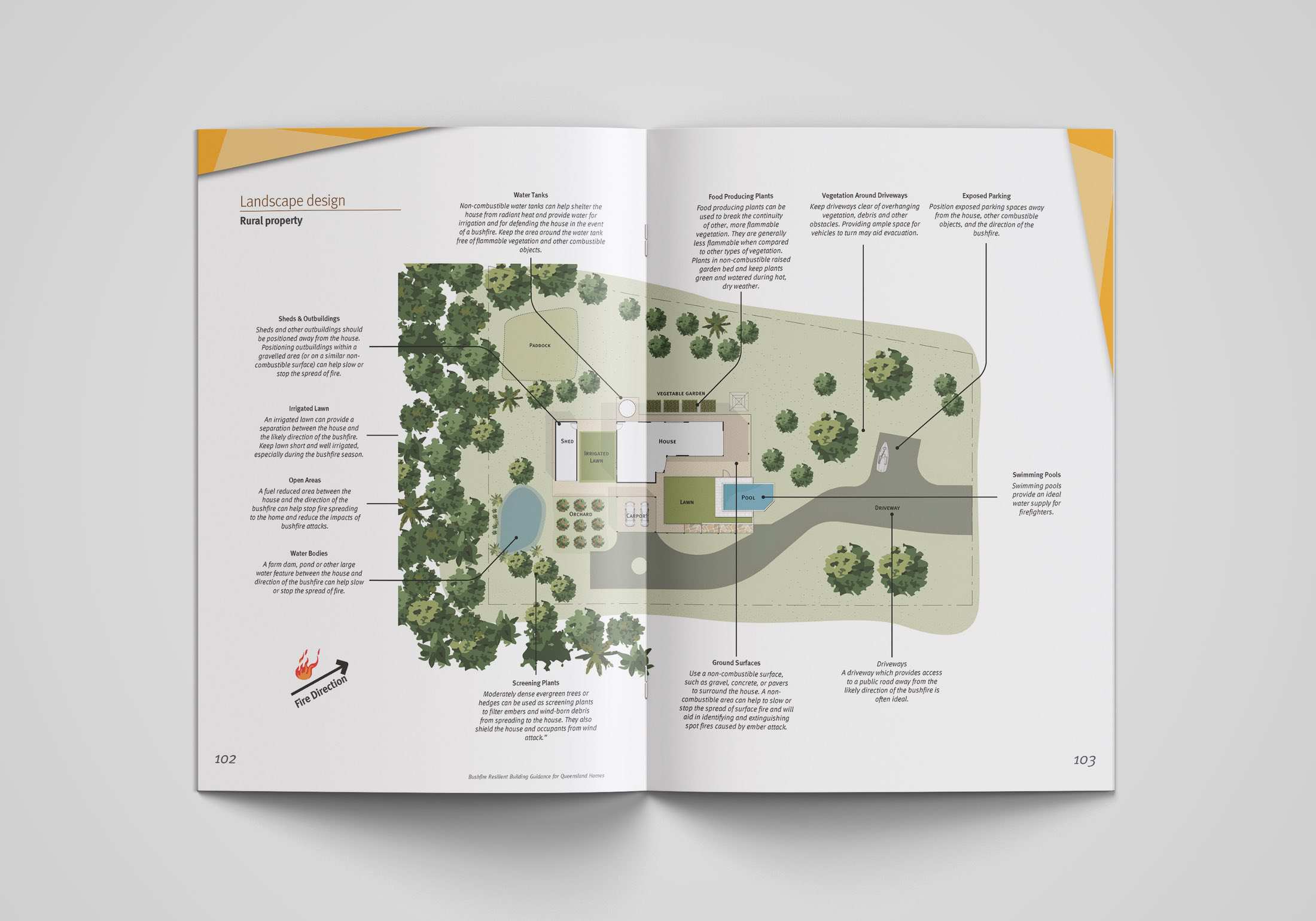 Whilst building codes typically stop at the boundary line, a best-practice approach allowed us to consider a far broader context. The guide takes into account the way neighbouring properties are interlinked. After all, bushfire resilience is multi-faceted and requires attention at varying levels of intensity and scales. To this end, the guide outlines tailored, site-specific solutions to adapt buildings for bushfire resilience.