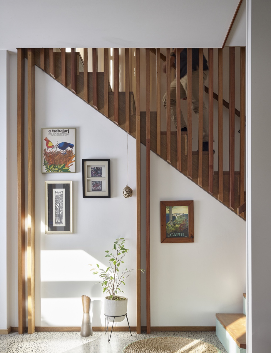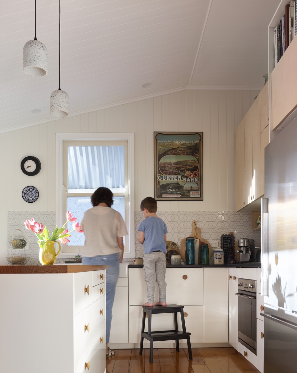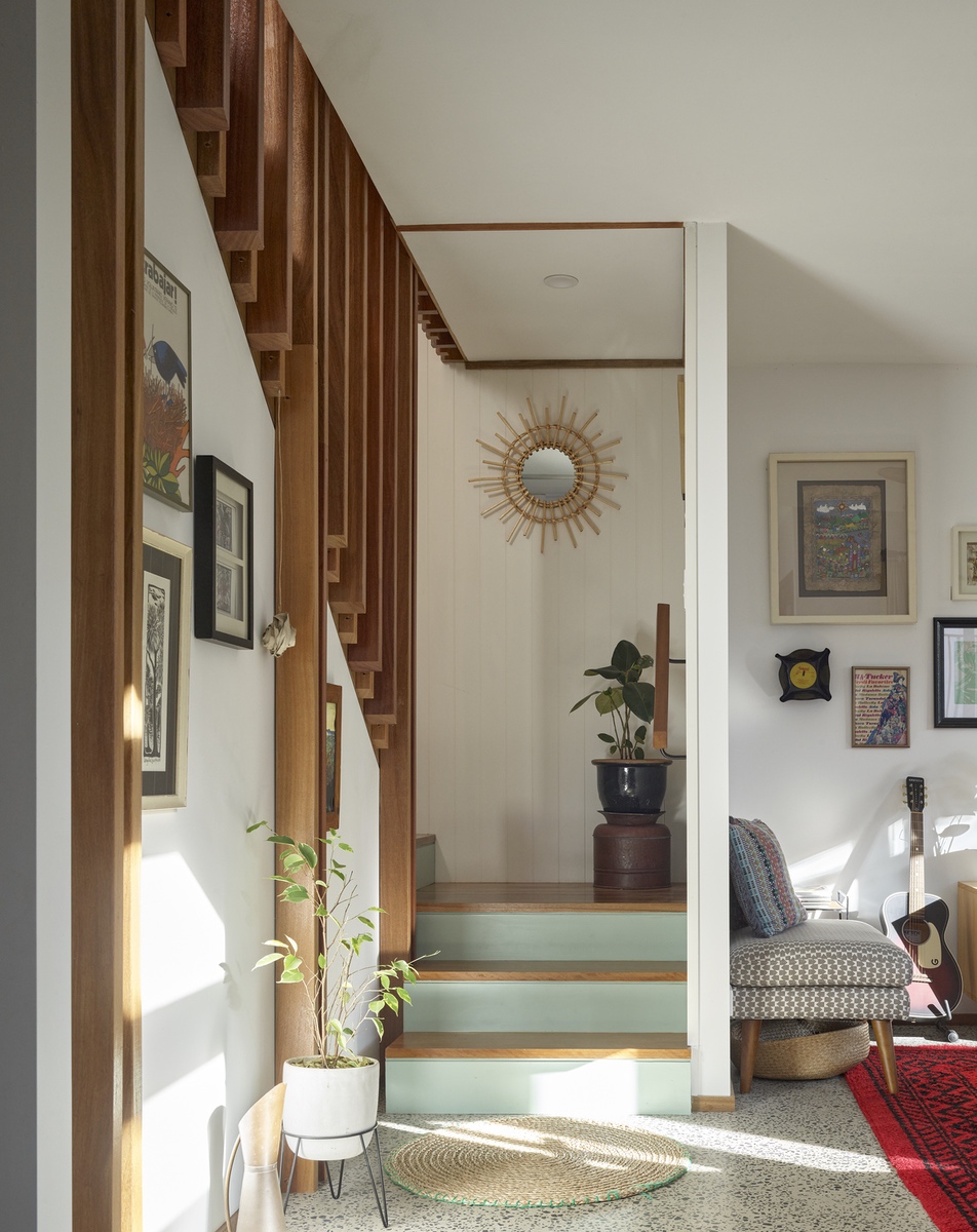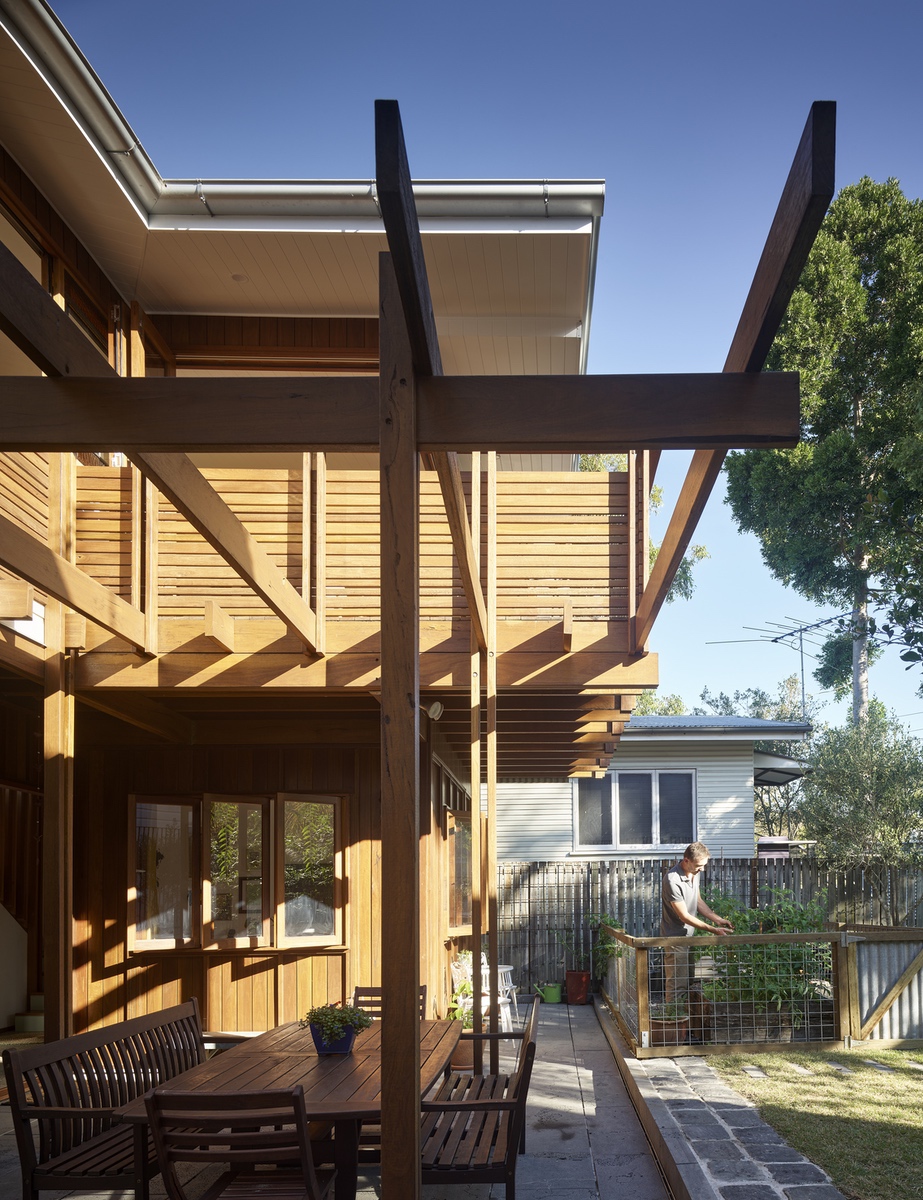 We developed a new, cavity-free, hardwood insulated single-skin wall designed to prevent water from building up inside the walls during flooding. This single-skin design kept true to the traditional hardwood Queenslander aesthetic.
