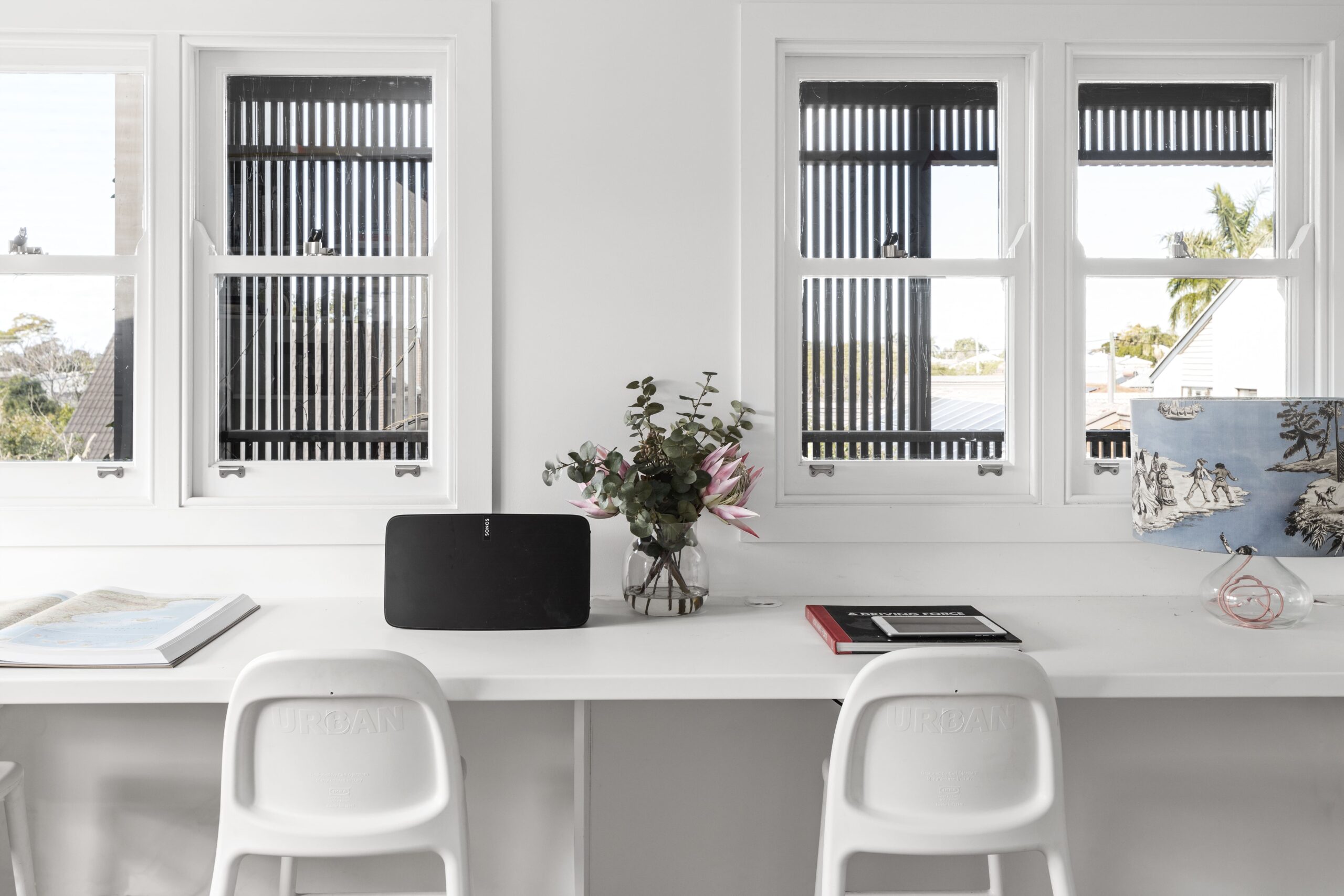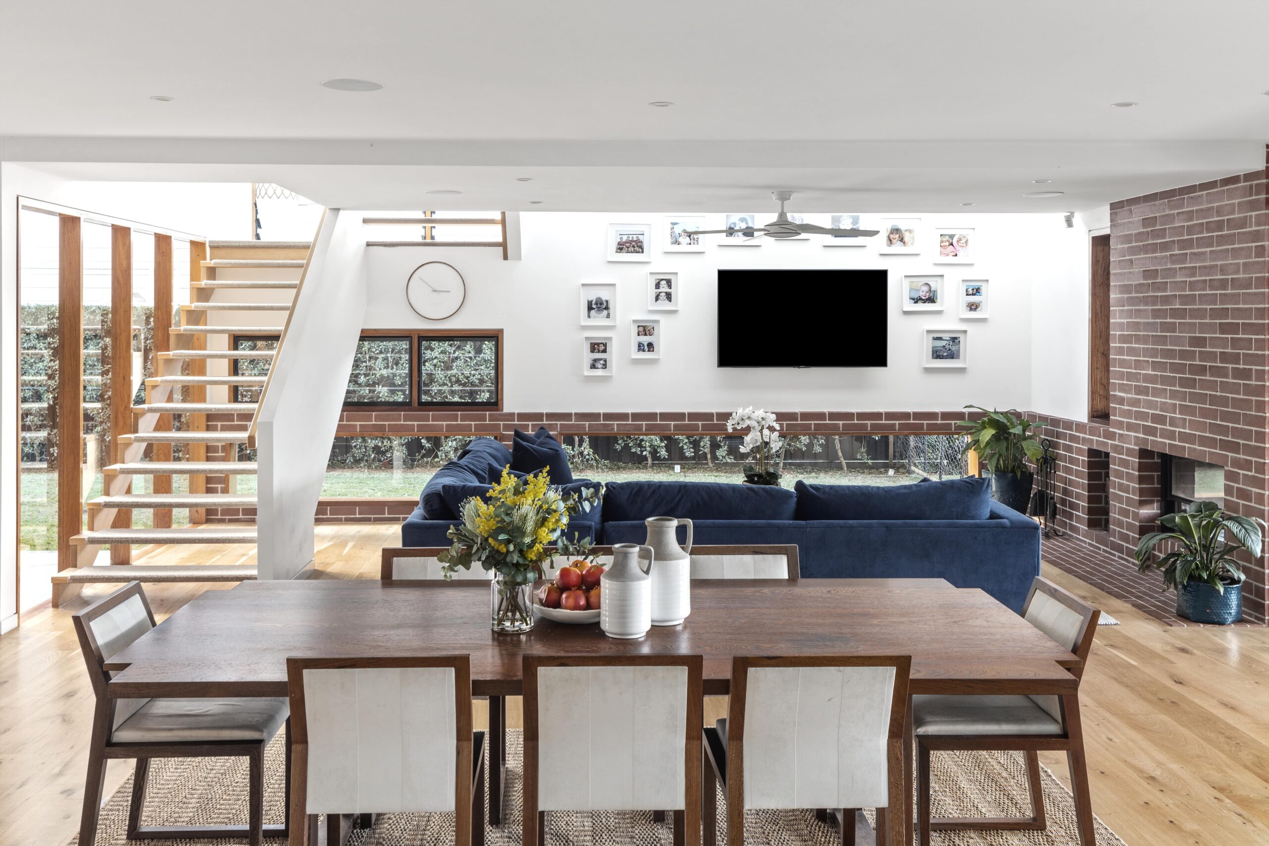 The ground floor now accommodates a kitchen, rumpus and dining/living area. Designed to maximise cross-ventilation, the homeowners can minimise their reliance on air-conditioning throughout summer. The addition of rainwater tanks and solar panels are among the other environmentally friendly elements to be found throughout the home.