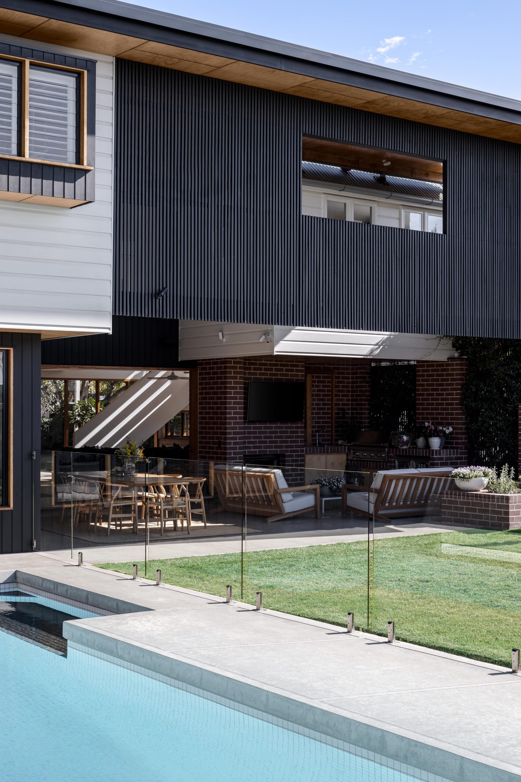 Our design transformed a one-storey home into a two-storey residence, ideal for a family of five to enjoy indoor/outdoor living.