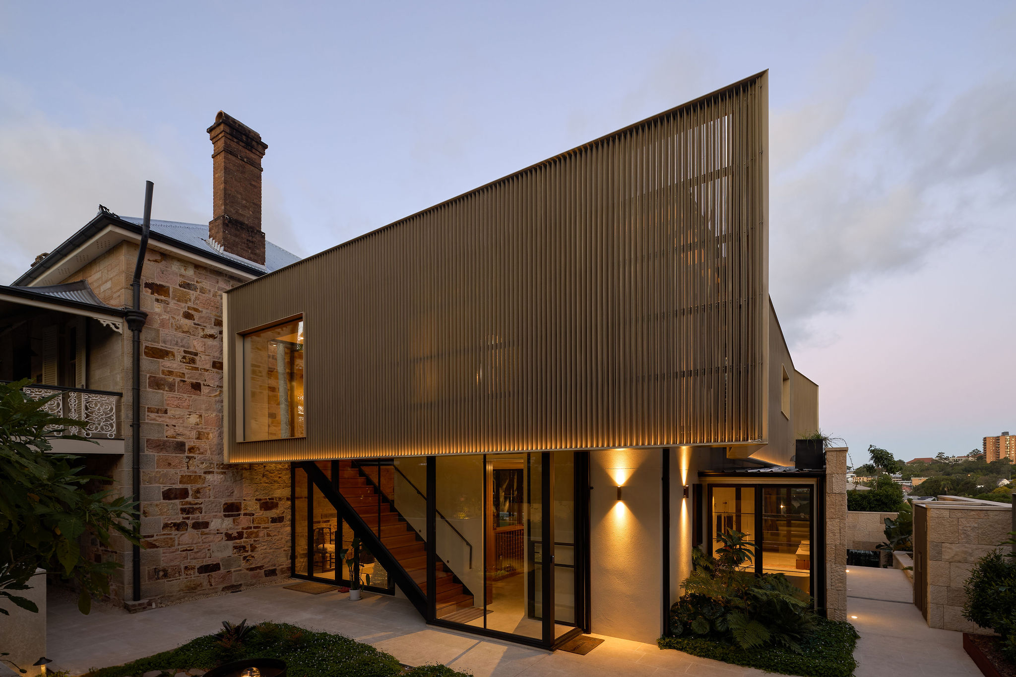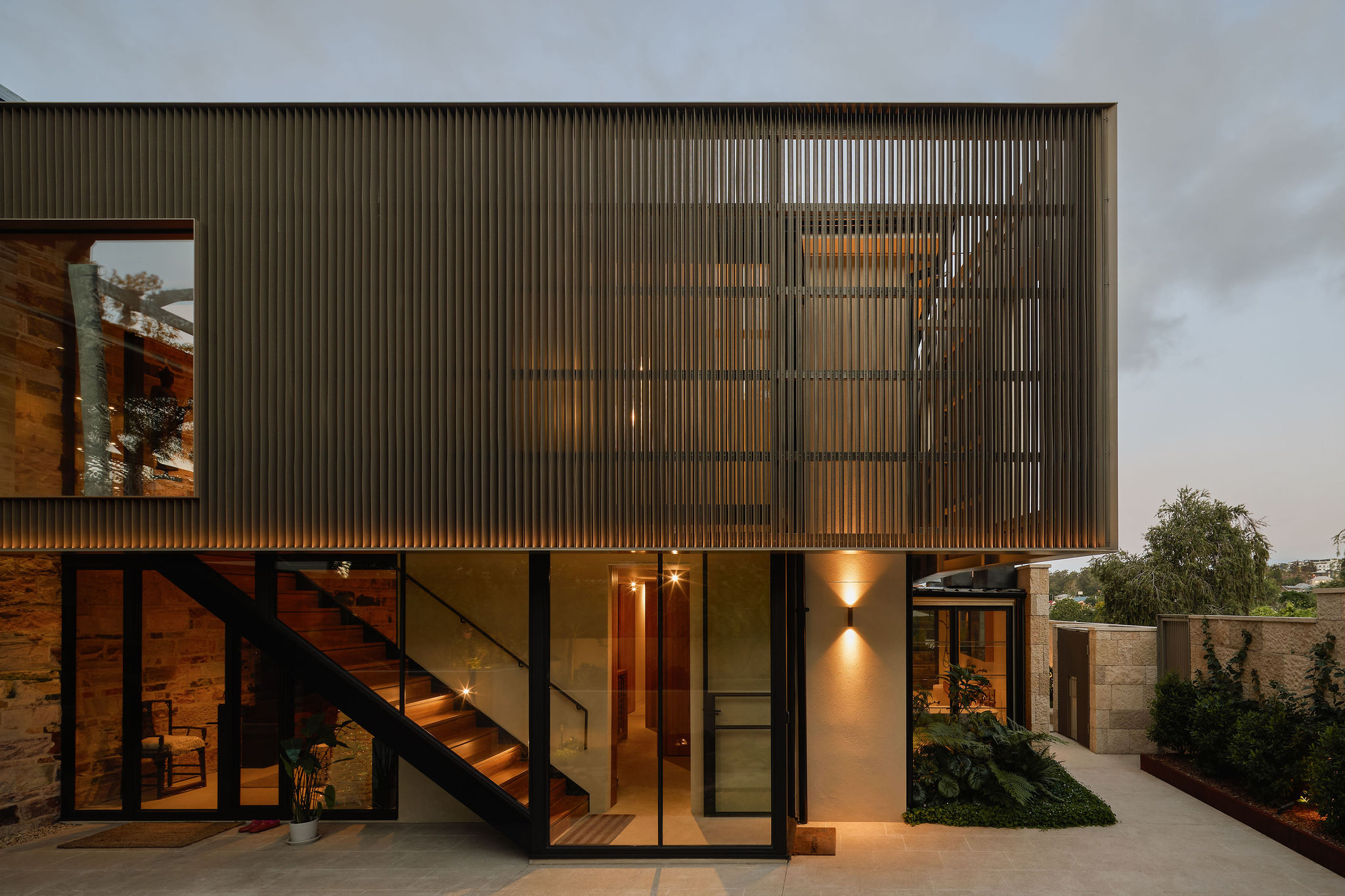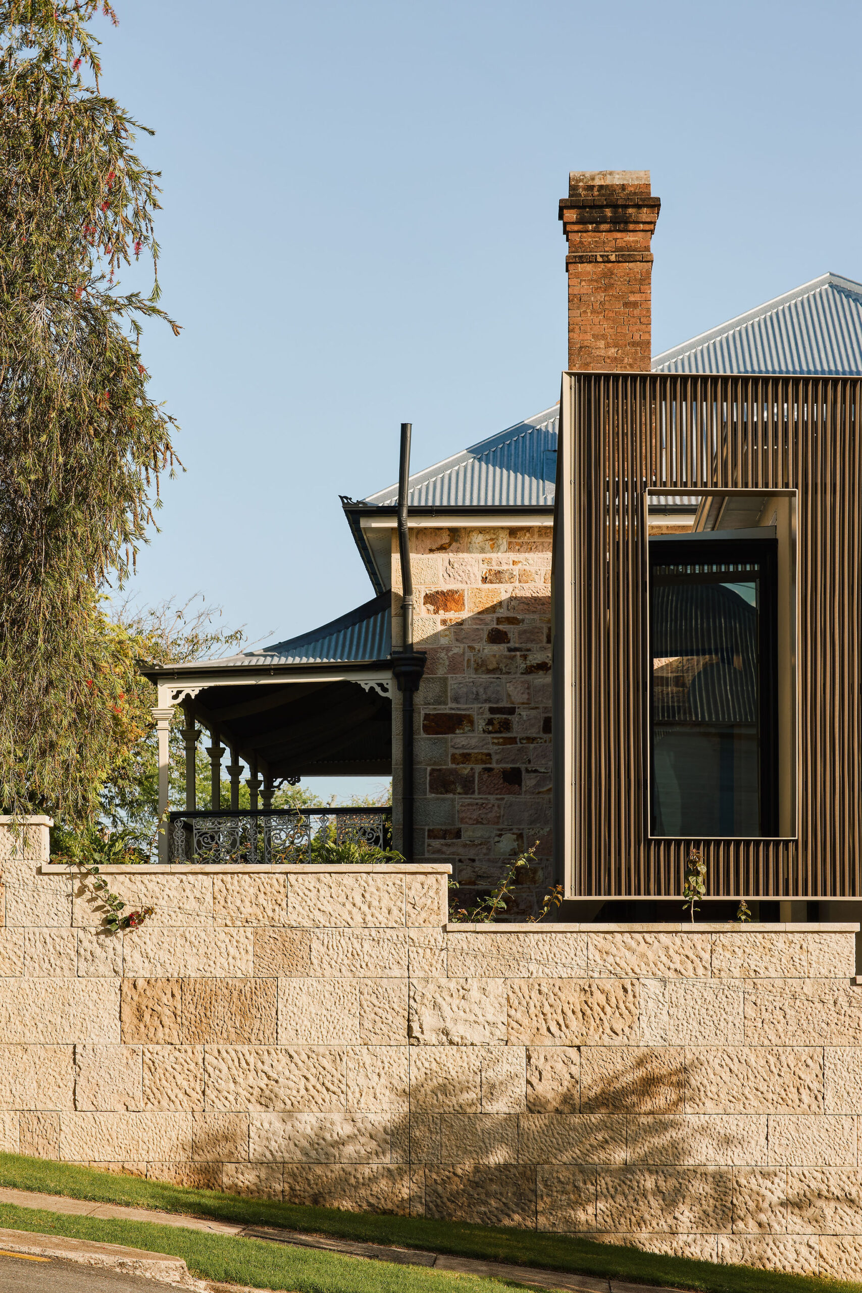 Making functional modifications while preserving the existing wall, floor and roof structure of the 80’s annexe embodies our ethos of adaptive reuse. The addition of a screen – made up of custom aluminium perforated fins – to the exterior delineates old from new, modernising while maintaining a respectful nod to tradition.