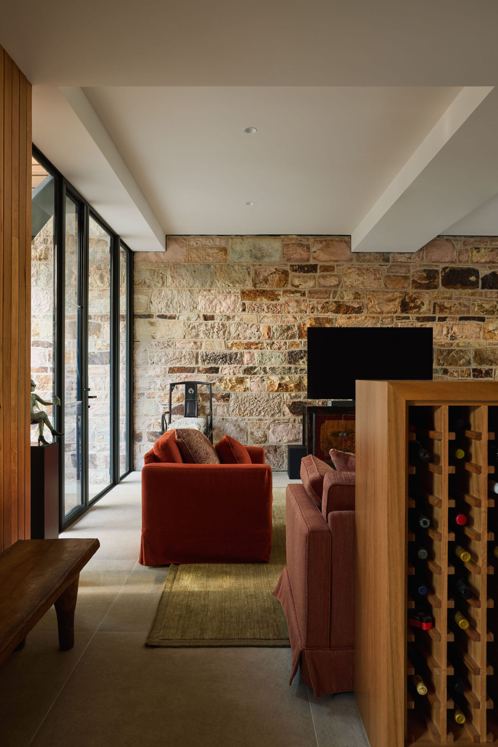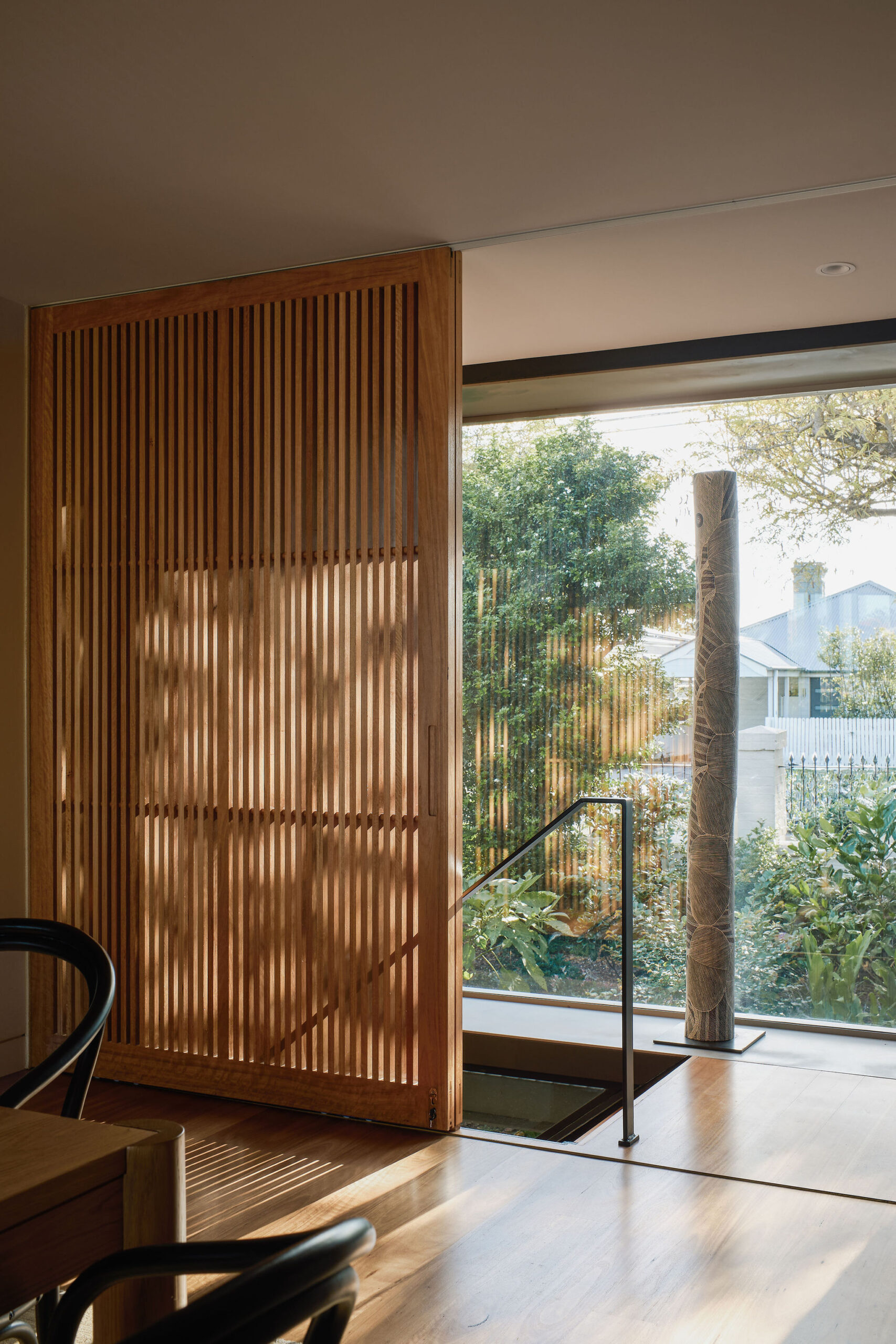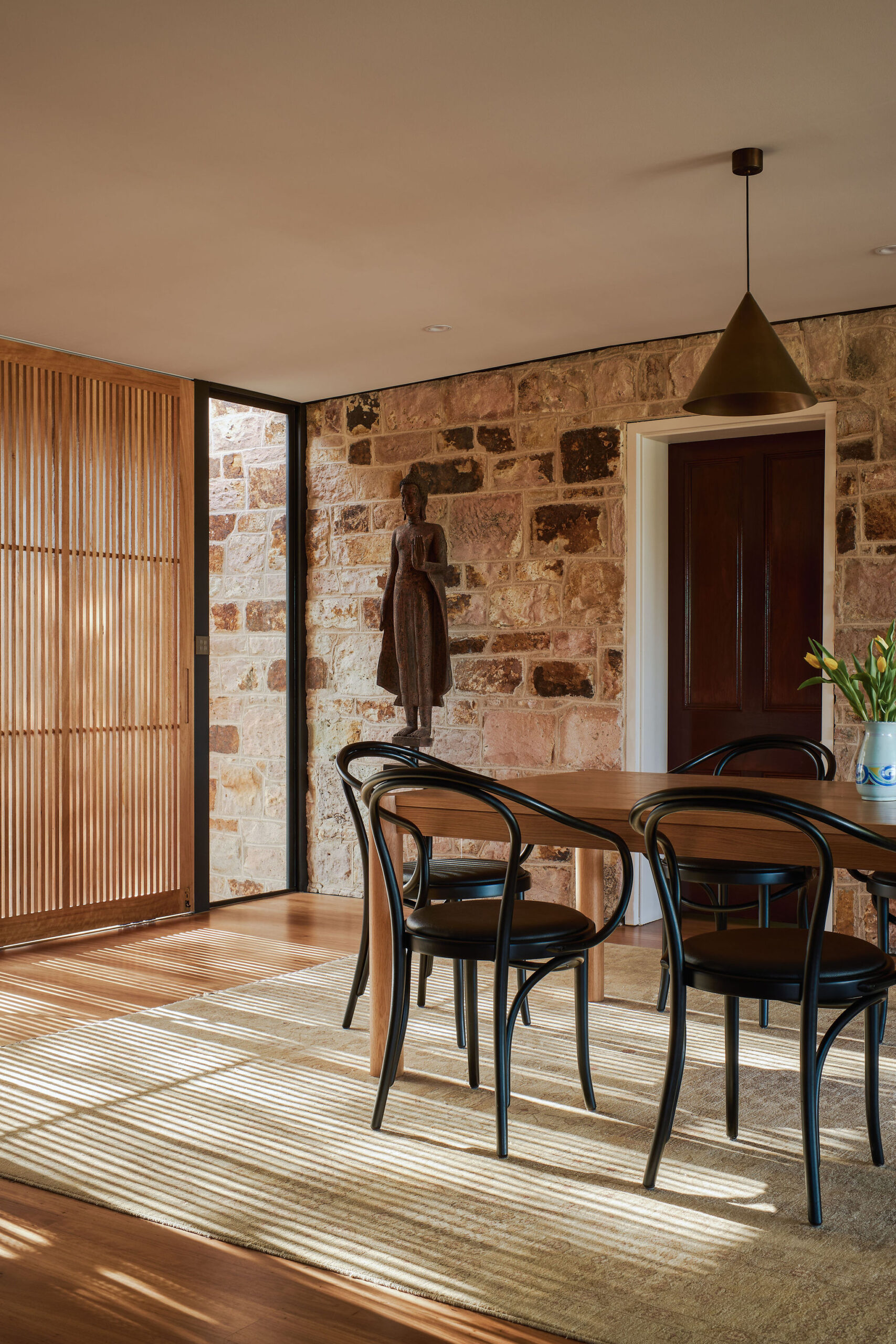 Making functional modifications while preserving the existing wall, floor and roof structure of the 80’s annexe embodies our ethos of adaptive reuse. The addition of a screen – made up of custom aluminium perforated fins – to the exterior delineates old from new, modernising while maintaining a respectful nod to tradition.