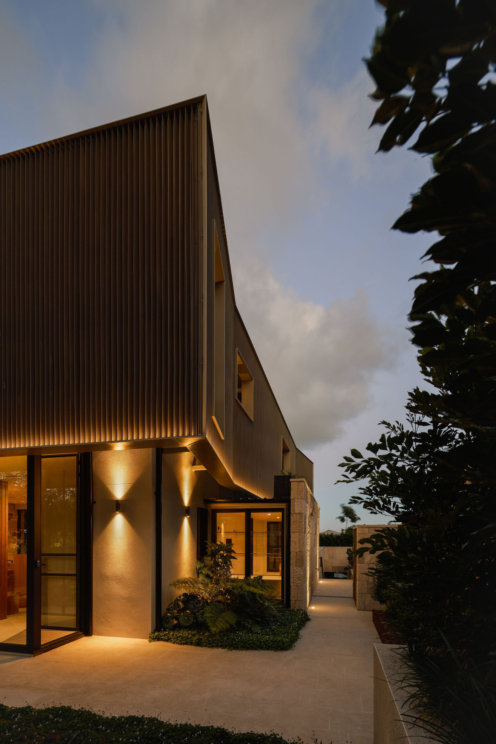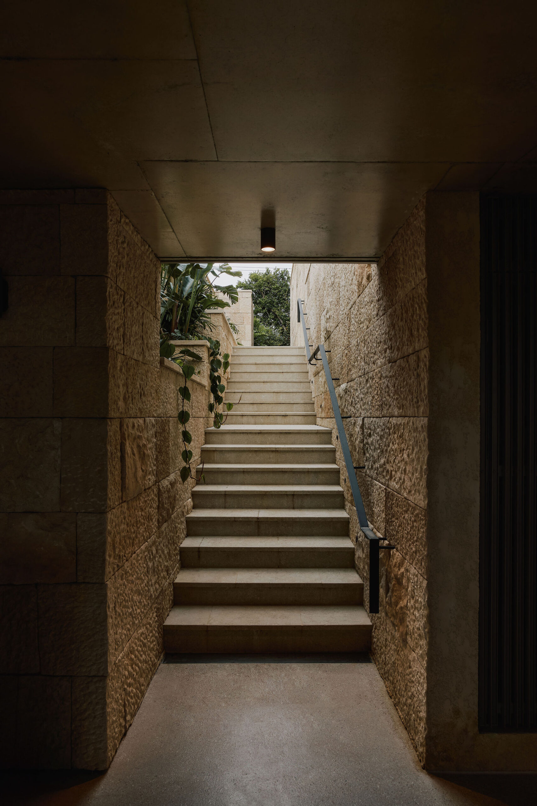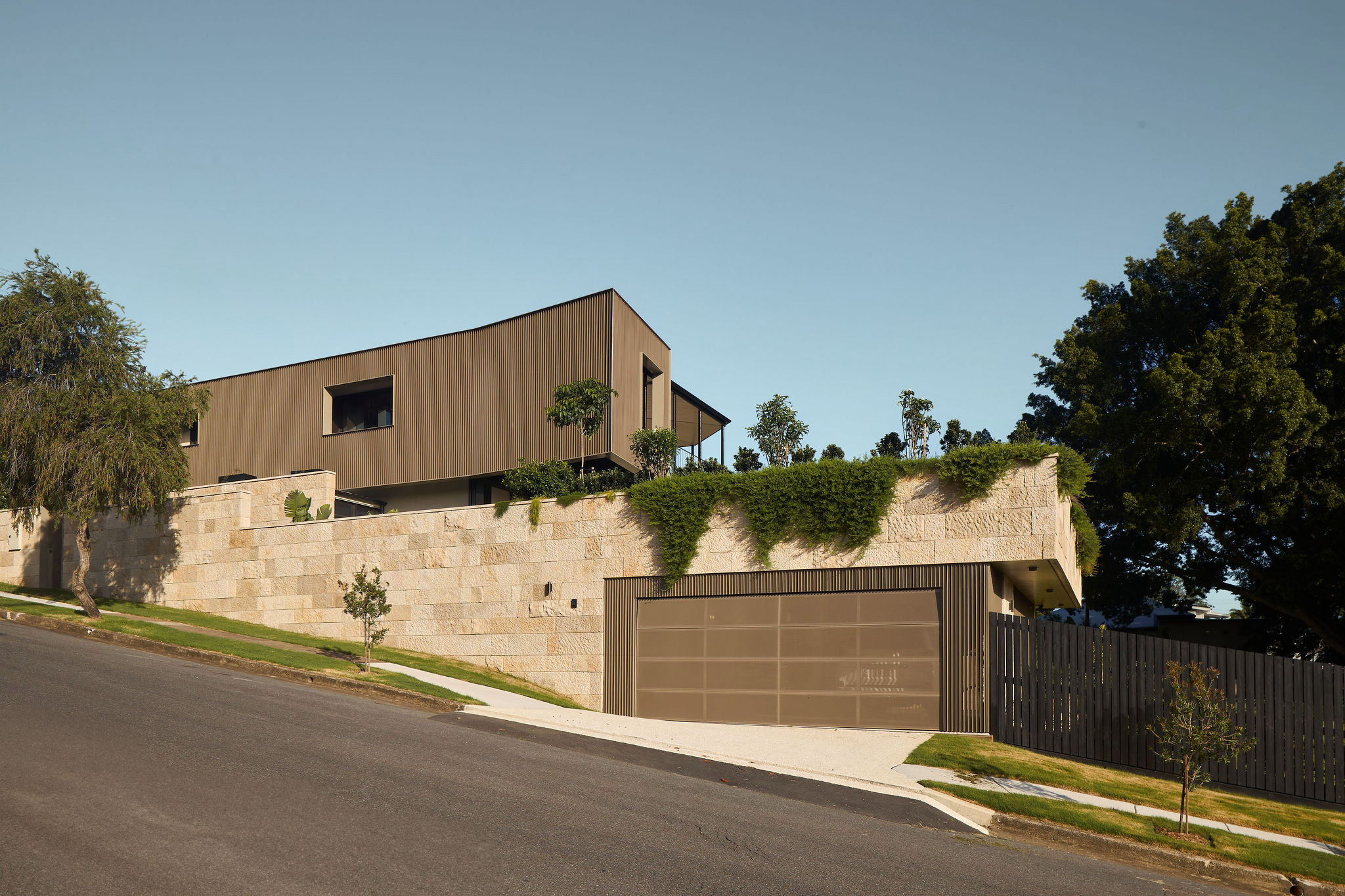 A continuous stone wall runs the length of the site, serving as both a visual buffer and a reference back to the timeless craftsmanship of the stone walls of the heritage home. The wall seamlessly melds with the landscape and integrates with planter beds that soften its solidity. Beyond mere functionality, it enriches the experience of both inhabitants and passersby.