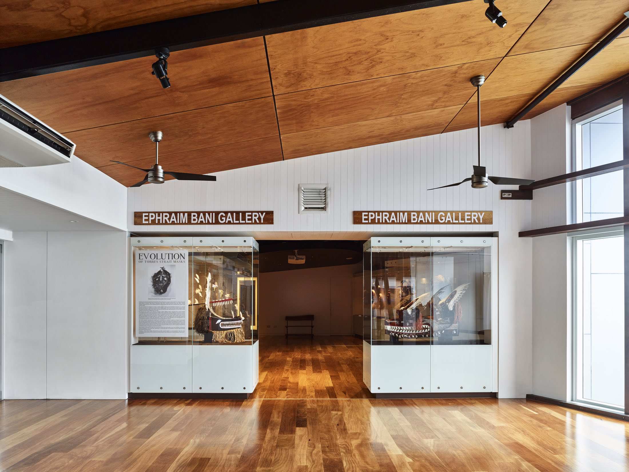 Stage One, completed in 2012, involved the addition of a new access ramp to the building and the reconfiguration of internal spaces. The following year we completed Stage Two of the renovations. This was a substantial upgrade of the internal gallery spaces including the Ephraim Bani Gallery. This was a substantial upgrade of the internal gallery spaces and equipment to allow for future repatriation and preservation of indigenous artefacts, and cultural heritage material to Waiben.
