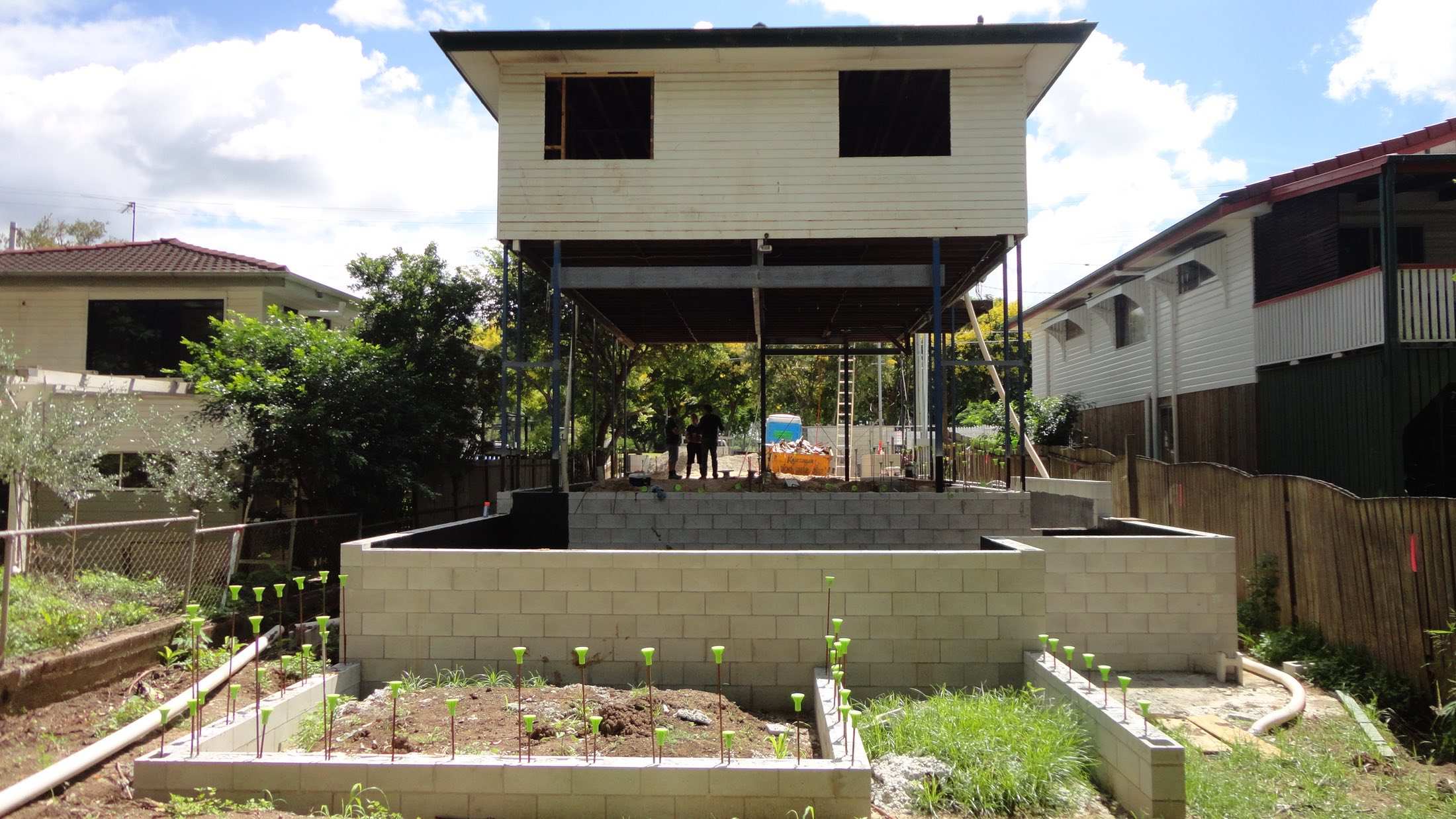The clients were forced to raise their house over three metres to comply with new temporary planning instruments that required habitable floor levels to exist above the flood line.