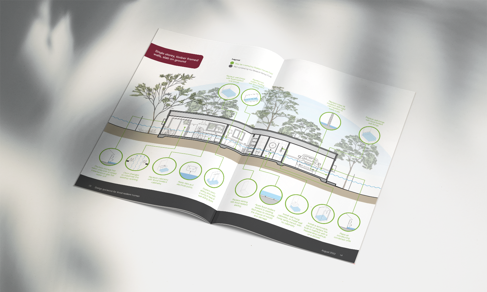 A guide for homeowners and families, developed after the 2022 Queensland floods, by JDA Co. in collaboration with the Queensland Reconstruction Authority, Local Government and the Office of The Queensland Government Architect.