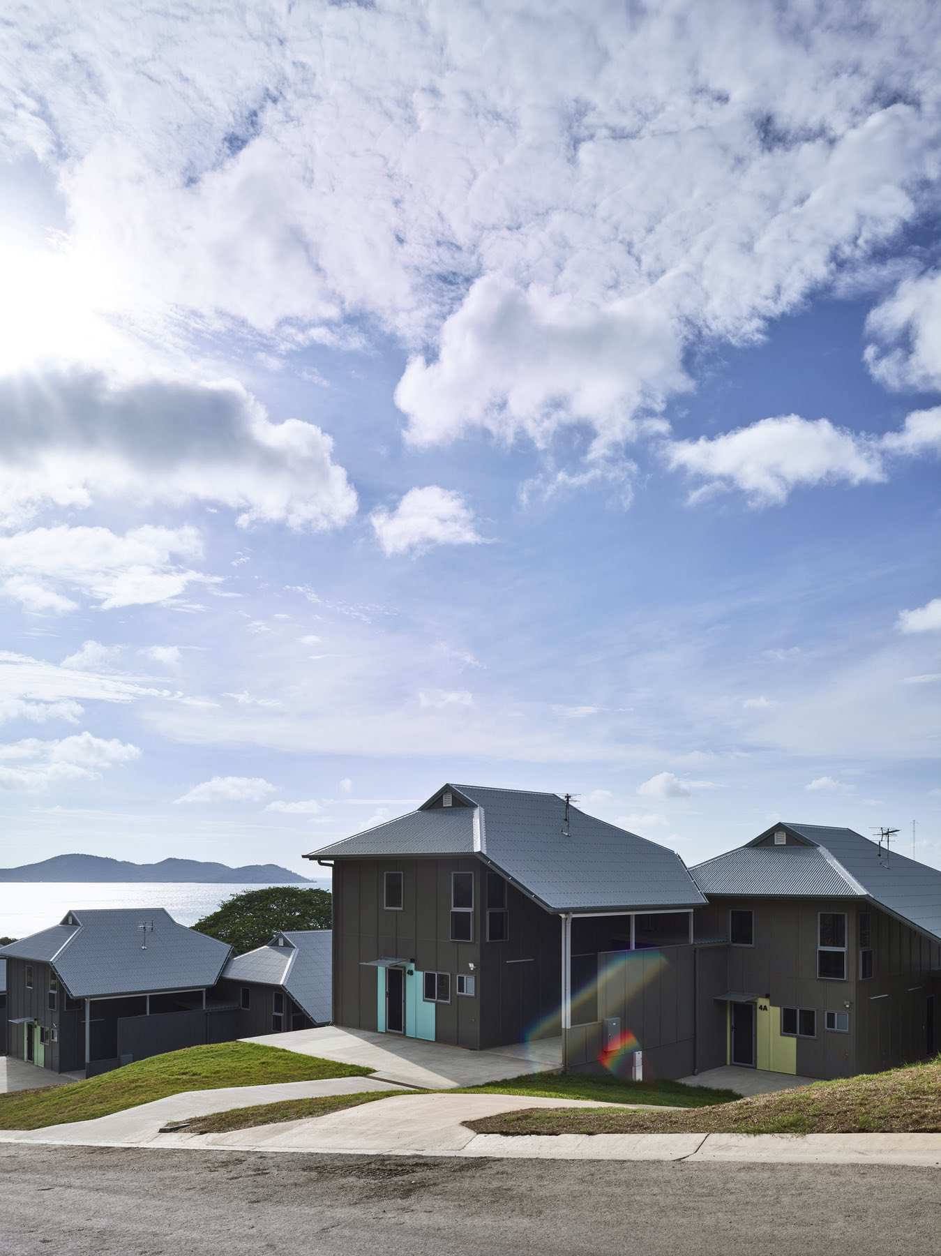 This was a large project in one of the most remote parts of Australia. So, we had to consider design and material choices to enable easy construction. Rather than creating a different design for each of the 20 townhouses, we developed a series of house types, which responded to the orientation and topography of their site.