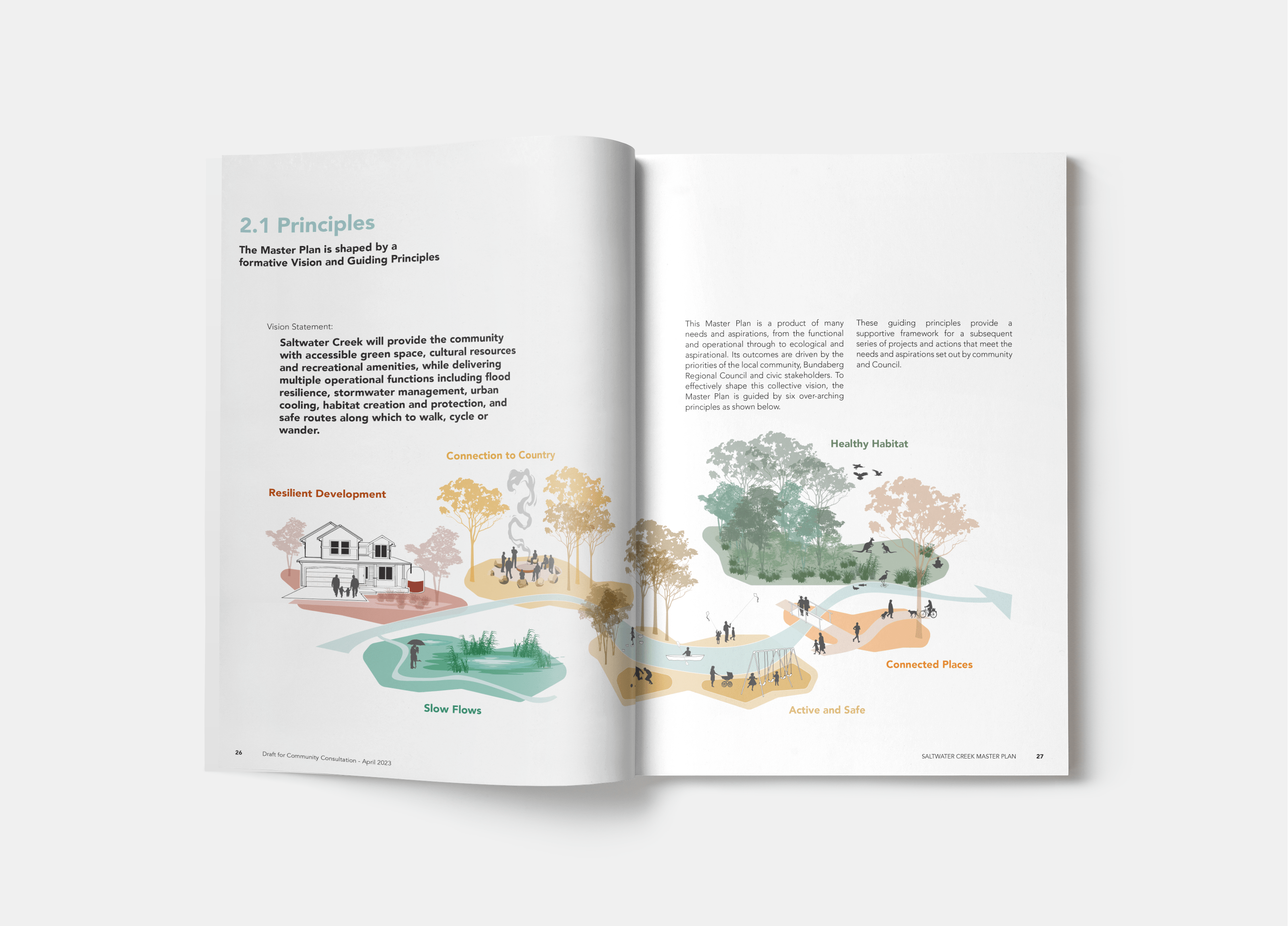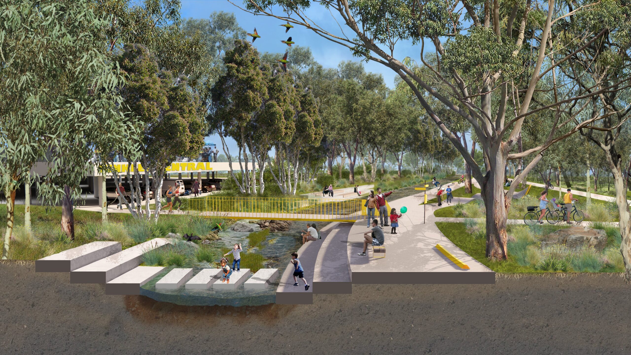 The masterplan aims to transform the waterway into an asset with multiple social and environmental benefits for the community. The Saltwater Creeks vision includes accessible spaces, amenities and social infrastructure where people and nature can coexist, and to mutual benefit.