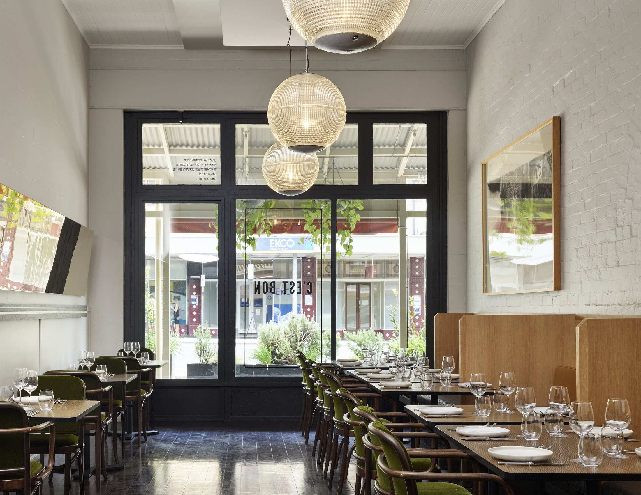 For the C’est Bon restaurant, JDA Co.’s fresh fit-out involved the removal of internal petitioning to open up the interior to better engage with the streetscape. Likewise, the addition of outside planter boxes form a subtle yet effective barrier to passing traffic, whilst allowing patrons to view the nearby passing parade of cyclists.