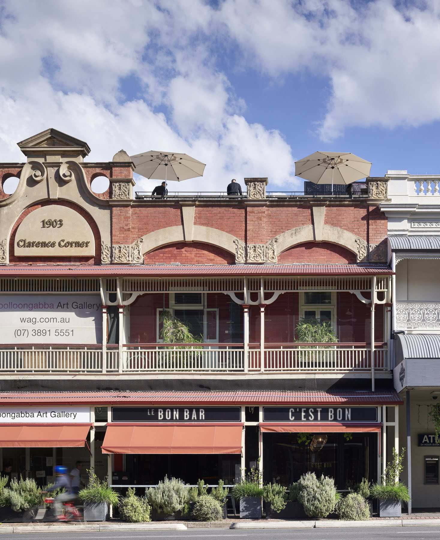 Originally known as ‘Shop Row’ and built in the early 1900s, the strip is now home to French restaurant C’est Bon, rooftop bar Le Bon Bar, our design studio, and the office of Brisbane businessman Steve Wilson — who was responsible for funding the initiative.