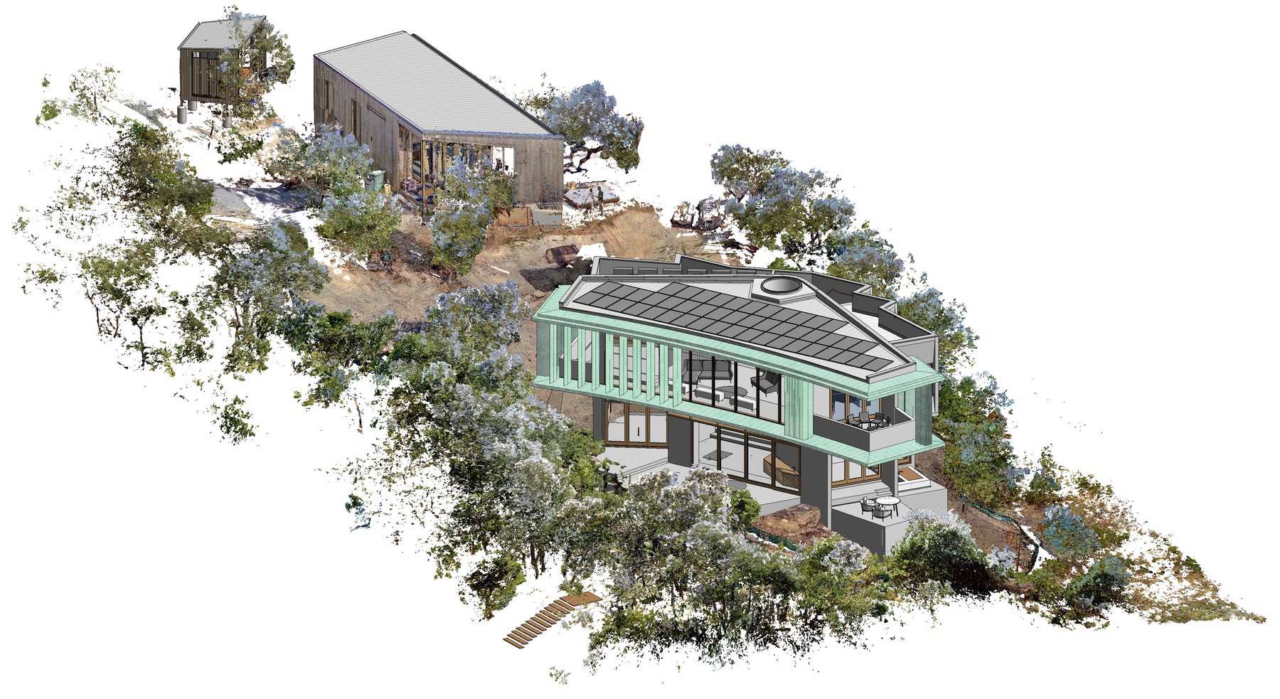 As The House is designed to sit lightly within the pristine landscape, it was critical for JDA Co. to understand the challenging rock bed formation on site prior to detailed design and construction. We used our in-house 3D laser technology, Spatial Ops, to explore, walk-through and design right into the landscape, often from off-site. We also used the technology to document construction work-in-progress. Building elements, such as the spiral stair formwork, were laser-scanned to provide an accurate model to contractors. As most building elements needed to be fabricated off site and shipped to the island, having a precise digital model to work from was vital.