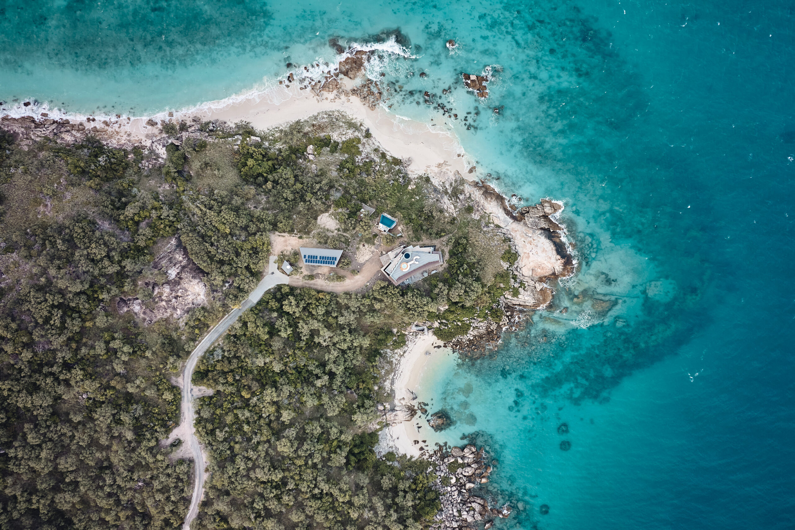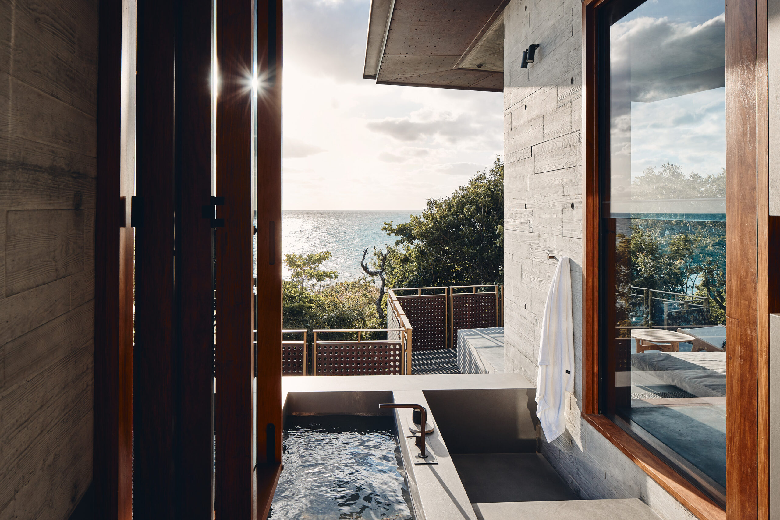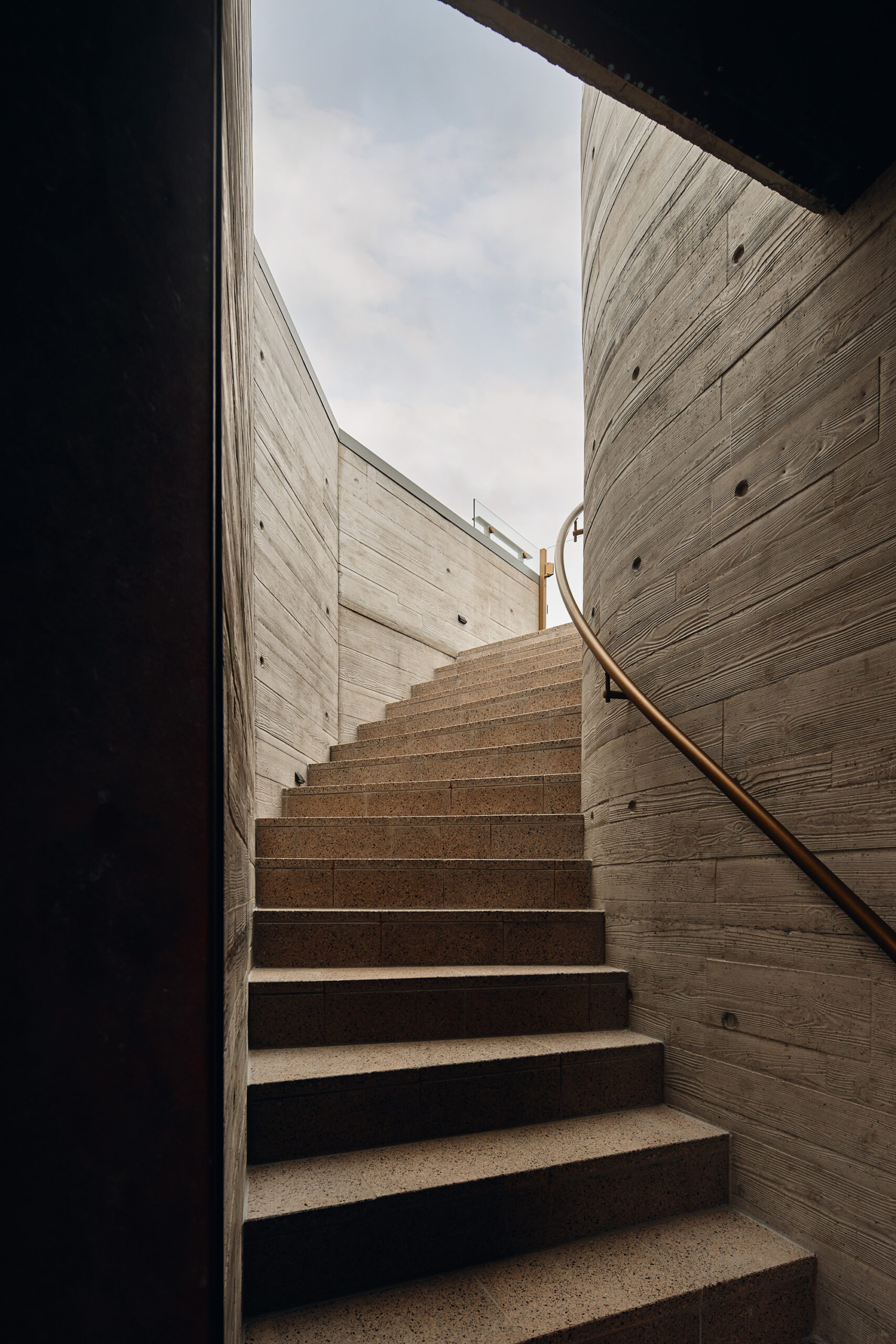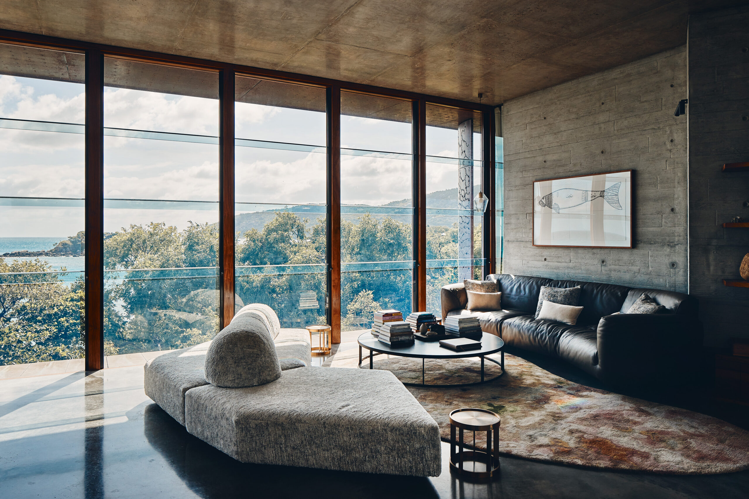 The building’s robust, board-formed concrete exterior is highly functional as it is aesthetical. The striking and rugged landscape lends itself to cyclonic winds and harsh weather conditions. As a result, The House is designed and built to shelter and protect when needed. Perforated copper blades lining the exterior are visually beautiful and act as debris shields that can withstand cyclonic winds intrinsic to this reef.