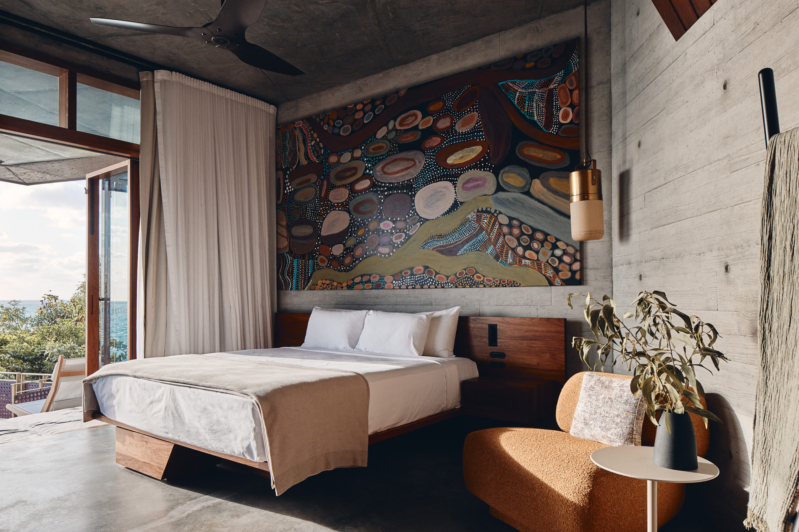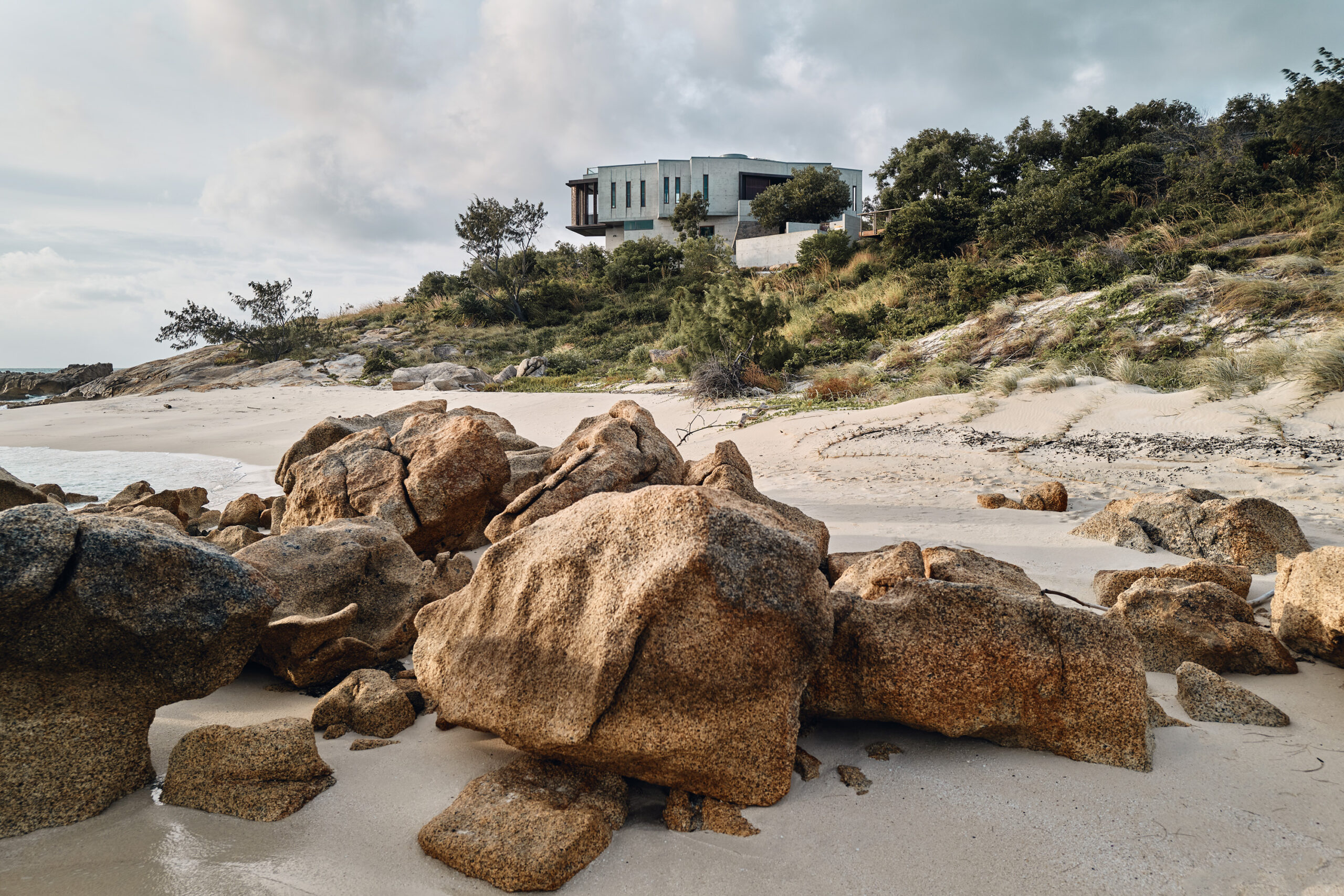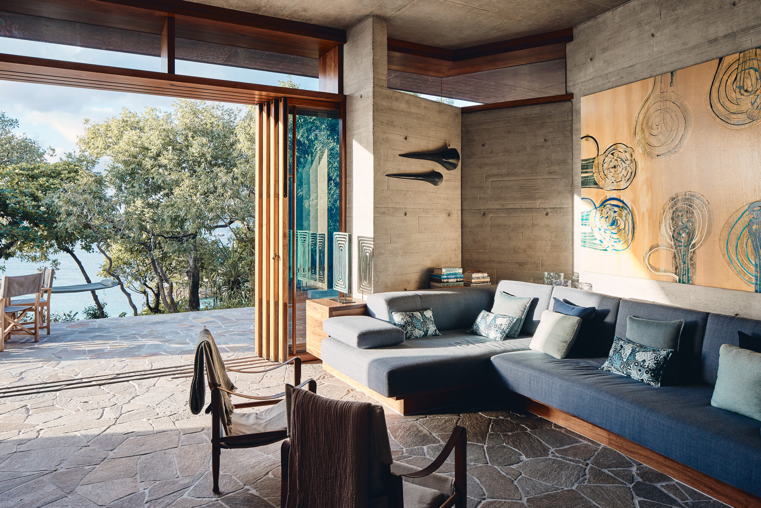 The House is deeply inspired by the rich geology and marine life of its incredible location on Lizard Island. The architectural plan is reminiscent of the stingrays that swim mere metres away. Narrow slit windows to the south and west act as ‘gills’ and are perfectly placed to direct prevailing breezes and allow The House to breathe on hot days.