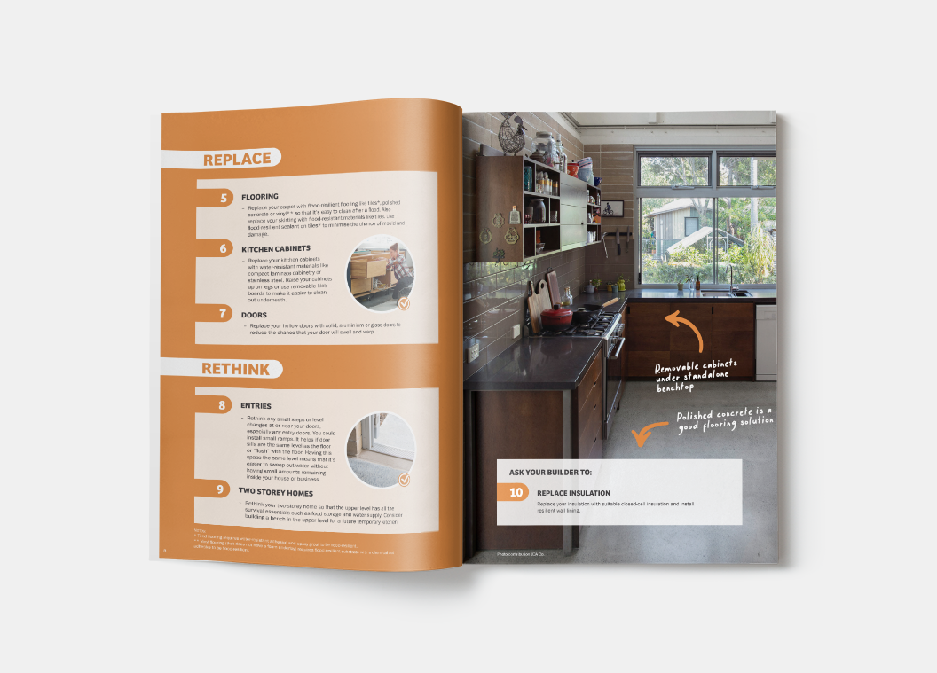 Moreton Bay Regional Council created a series of ‘Your Home and Living Guidelines’ to support climate smart and improved built form and urban design outcomes in Moreton Bay. JDA Co. worked with Council on ‘Your Flood Smart Buildings Guideline’ to assist residents whose home or building was affected by flood, or was located in a flood prone area, to improve their flood resilience. The guide includes helpful tips about how to rebuild or retrofit your building to be flood smart, as well as ideas to minimise life and work disruption during and after a flood event.