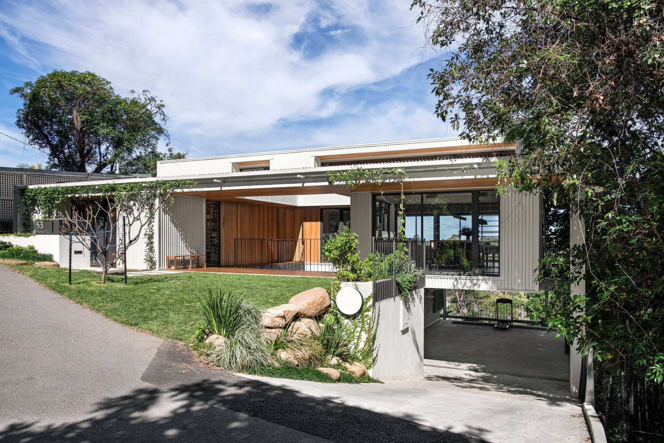 Among the home’s biggest triumphs are its versatility and elements of surprise. “From the street, the house appears humble and unassuming,” Clive says. “However, upon entering the property, the design reveals incredible sight lines through to the river.”